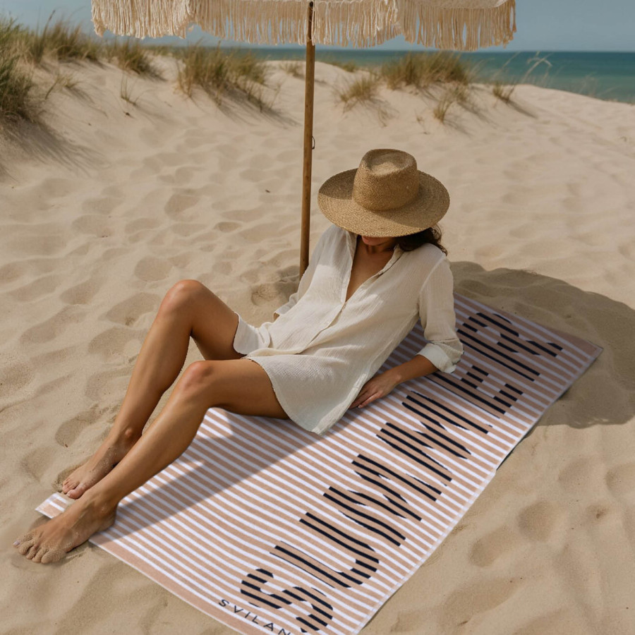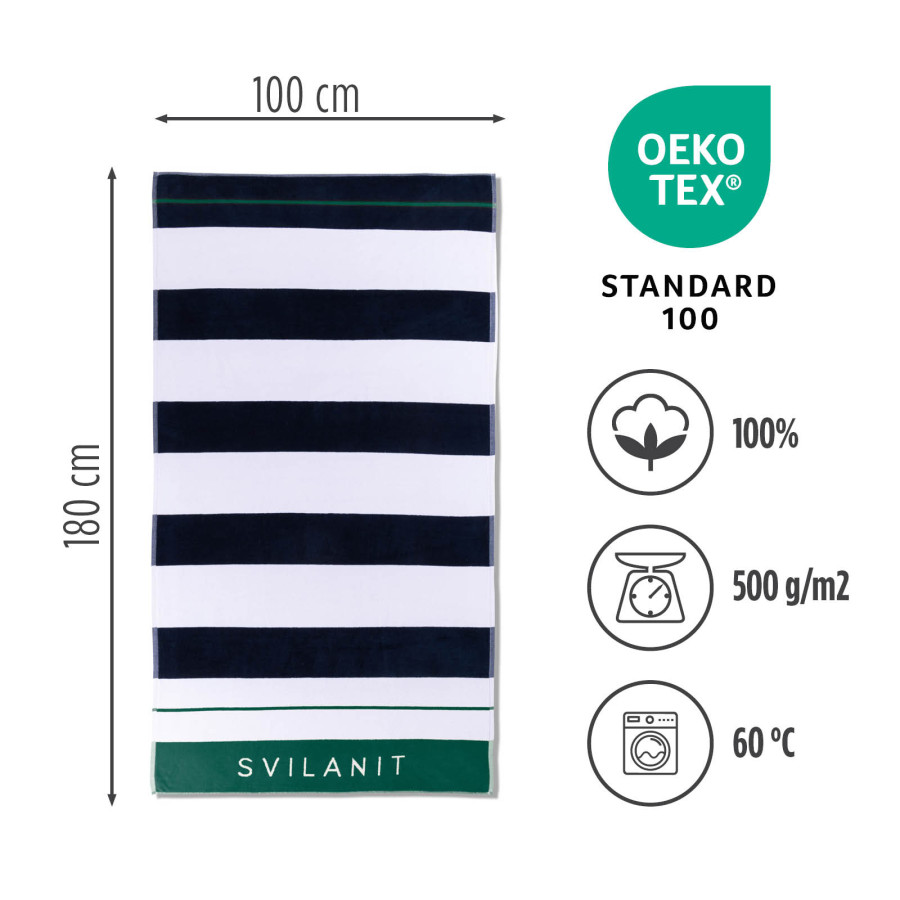 Osetite pravi letnji odmor uz Svilanit peškire za plažu. Velika dimenzija pruža vam luksuzan prostor za potpuno opuštanje na suncu ili u prijatnoj hladovini. Izuzetno mekan, sa gustim tkanjem i 100% pamučan obezbeđuje vrhunsko upijanje nakon svakog kupanja, dok OEKO-TEX sertifikat potvrđuje nežnost i sigurnost za vašu kožu.